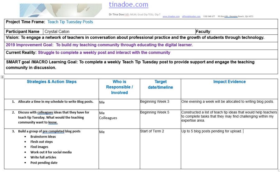Teach Tip Tuesday Goals